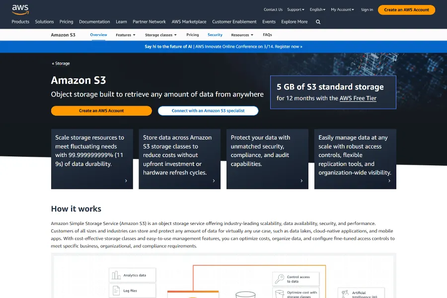 Note: The free tier is only available for 12 months (1 year). After that period you change into the paid service with a "pay as you go" package by gigabytes used.