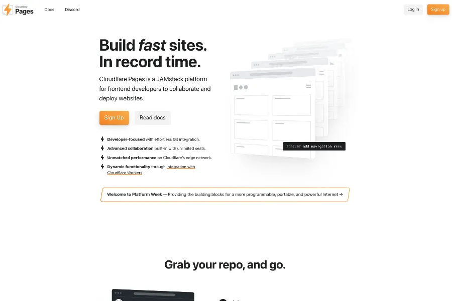 ​Cloudflare is known for its worldwide spanning net of CDN servers and DDOS protection features. Its pages feature offers a JAMstack platform for frontend developers to collaborate and deploy websites.