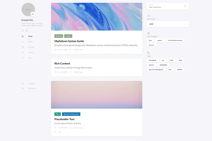 If you're looking to create a multilingual website using Hugo, our selection of multilingual Hugo themes is perfect for you! These themes are designed to make building a multilingual website a breeze, with built-in support for multiple languages, fully responsive design, customizable features, and an easy-to-use interface.