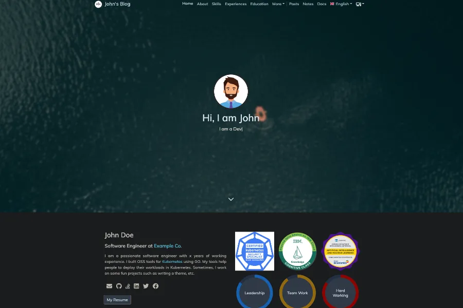 Introducing Toha, A multilingual Hugo theme for a personal portfolio, a sleek and minimalist theme designed to showcase your skills and experiences in a clean and modern way. With a fully responsive design and carefully designed cards, your portfolio will look great on any device. For those who are looking to track their success, Toha also includes analytics support to monitor their progress, as well as an experience timeline and achievement gallery to show off their accomplishments.