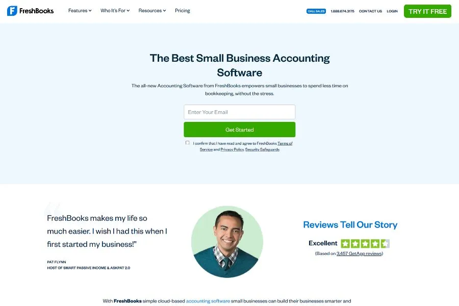 FreshBooks, an online accounting service provider, makes it easy for website visitors to take the next step on their small business accounting service page. As you can see, visitors simply plug in their information and will then receive a free trial!