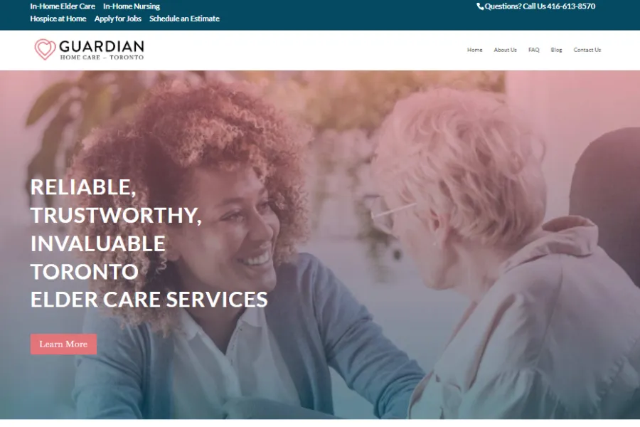 For instance, Guardian Home Care, a healthcare service company based out of Toronto, Canada, uses excellent imagery on their elder care services page.