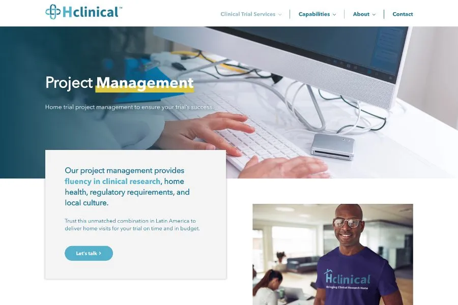 H Clinical, a company that specializes in clinical trial services, highlights client testimonials on their service page for clinical trial project management.