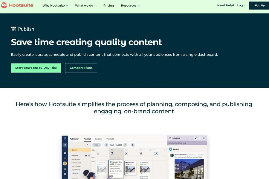 Hootsuite, a social media management platform, has a quality CTA on their service page, as well.