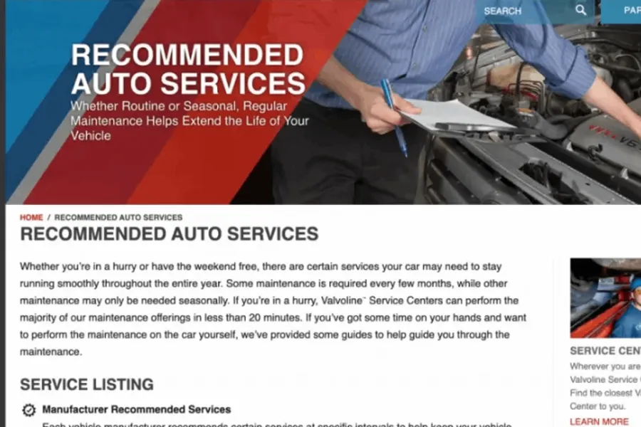 Valvoline, a provider of automotive services, also uses excellent imagery on their recommended auto services page.