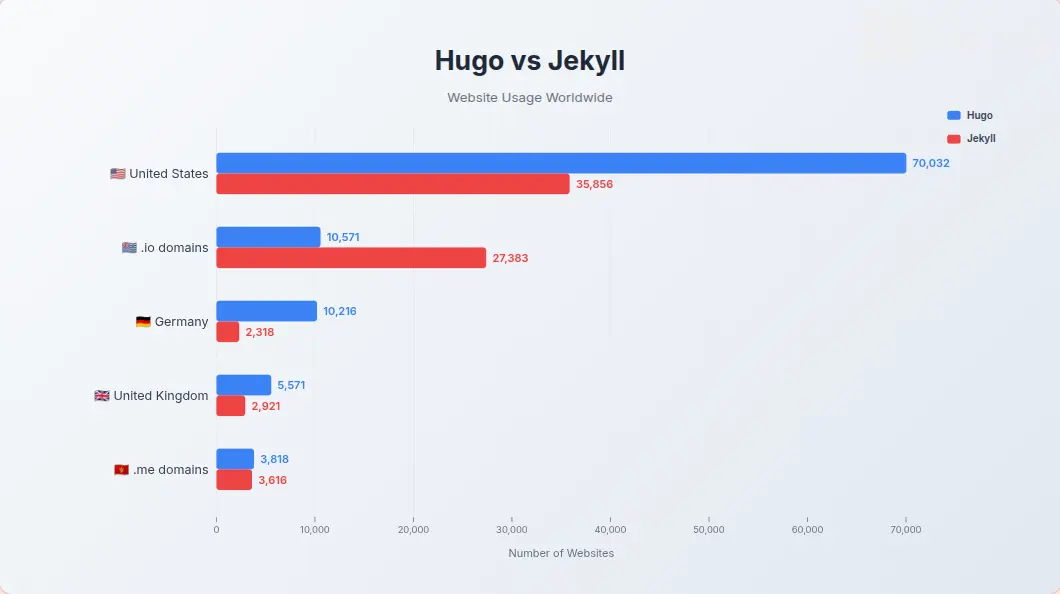 Performance is where Hugo demonstrates its clear superiority over Jekyll. Recent 2024 benchmarks by Michael Nordmeyer reveal significant differences: